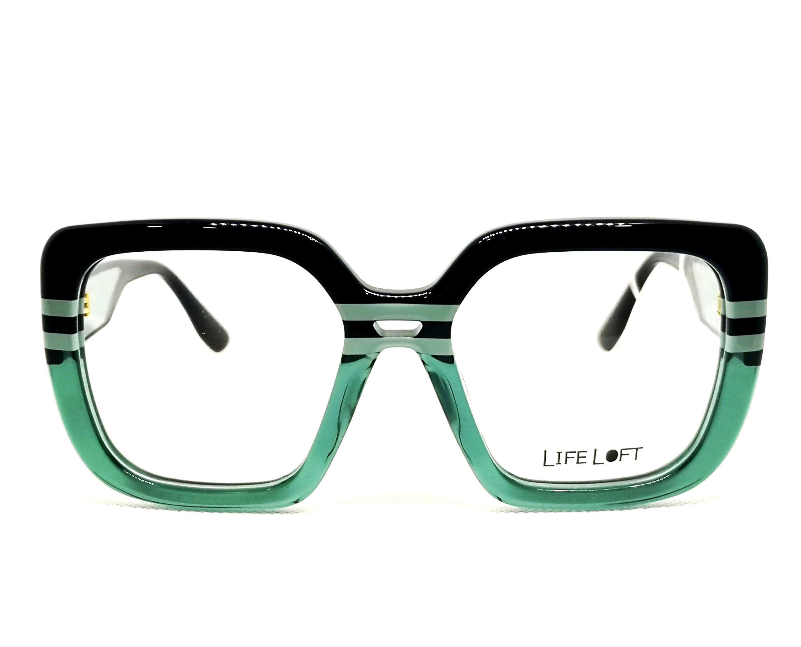 Gafa de graduado de la icónica marca LIFE LOFT, diseñadas en España con materiales de alta calidad y resistencia. Presenta frente de forma cuadrada contruida en acetato de alta calidad, el color negro de la parte superior contrasta con el verde translucido de la parte inferior. Una gafa de estilo retro, vibrante y divertida.